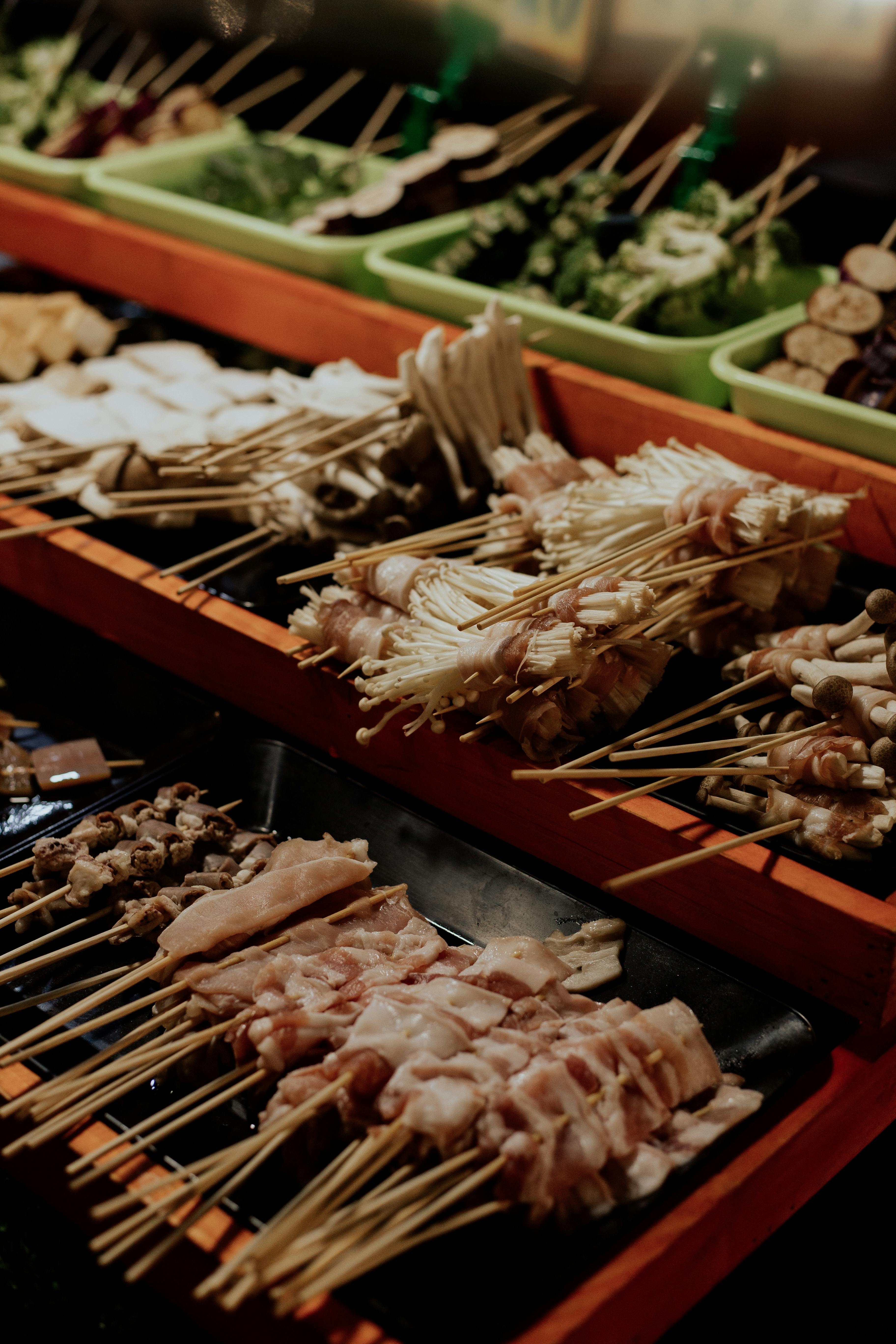 - 재료가 신선해 보이는 곳!: 꼬치에 꽂힌 재료들이 신선하고 깔끔해 보이는지 확인하세요. 특히 해산물 꼬치는 더 신경 써서 봐야겠죠?