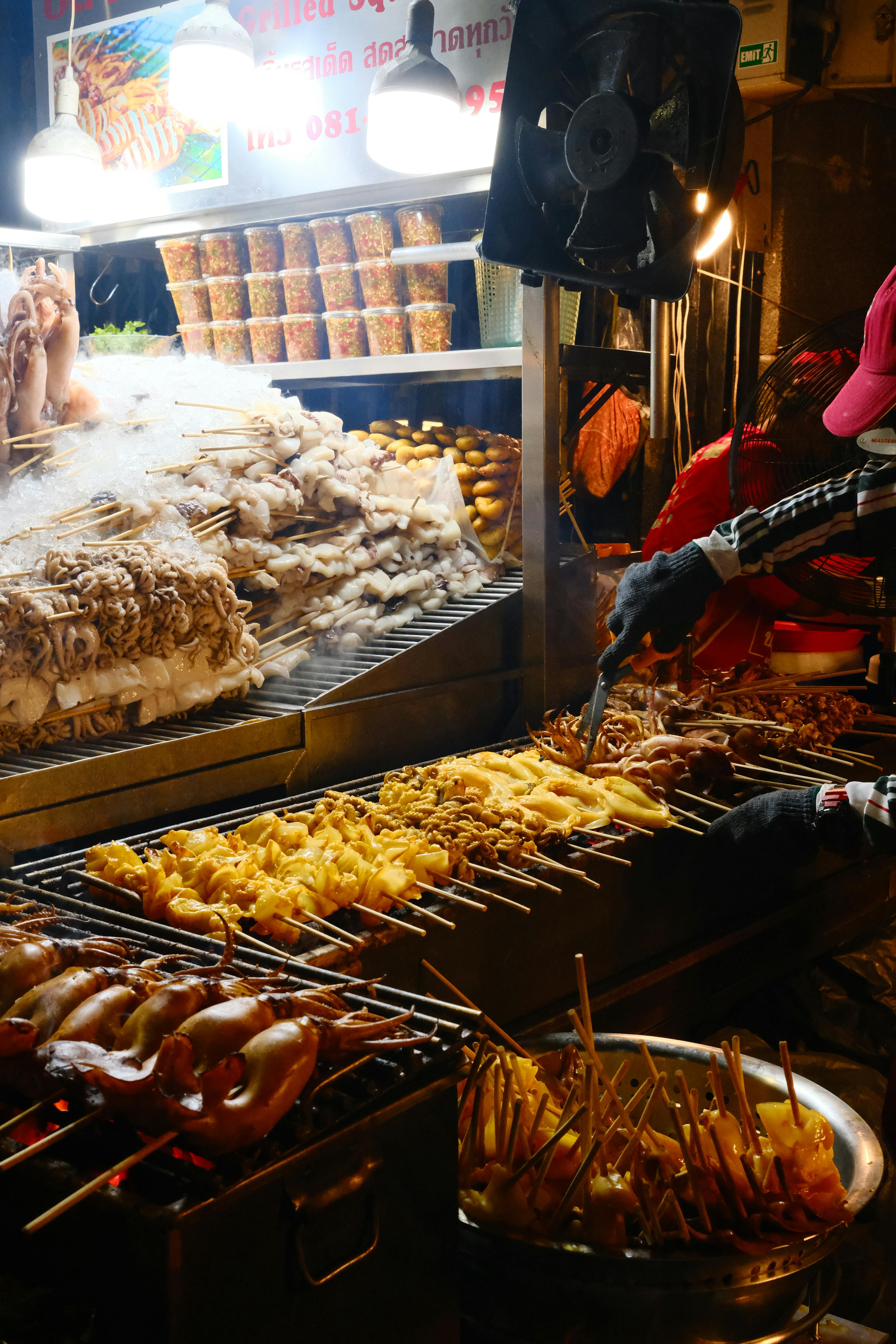 태국 꼬치구이는 대부분 주문과 동시에 숯불에 구워주기 때문에 뜨끈하고 신선하게 즐길 수 있어요. 길거리 음식 위생이 걱정될 수도 있지만, 대부분 회전율이 빨라 걱정 없이 즐길 수 있답니다!